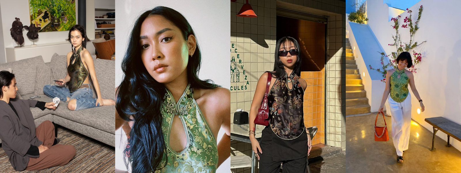 Brocade Apron Halter Top - Black with Longevity Medallions
