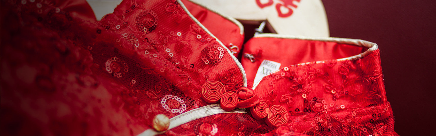 Flutter Sleeves Fitted Qipao with Front Slit - Lucky Red