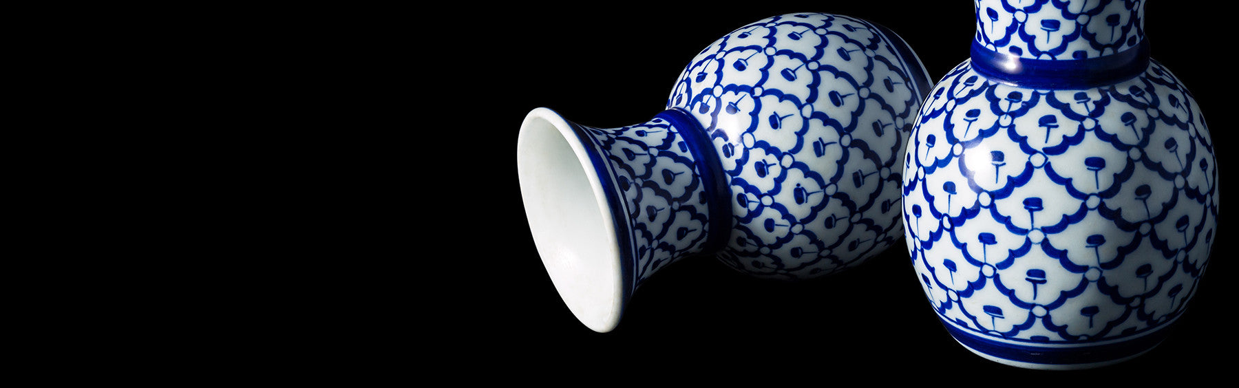 Apple-Shaped Blue on White Double Happiness Jar with Lid